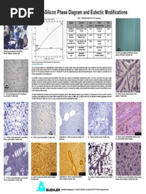 Si/Al Phase Diagram Most Si/Al alloys are cast near this eutectic point, they are cheap to manufacture; but cuboid Si flakes cause brittleness. Doping with 0.01% Na alters the compositional and temperature of the eutectic point (red lines): Alloy 2, which has the same relative amounts of Si and Al, now preciptates in a hypoeutectic fashion. The binary Al-Si phase diagram was initially studied by Fraenkel of Germany in 1908. It is a relatively simple binary diagram where there is very little solubility at room temperature for Si in Al ... The Al-Si Phase Diagram - Volume 15 Issue S2. To send this article to your Kindle, first ensure no-reply@cambridge.org is added to your Approved Personal Document E-mail List under your Personal Document Settings on the Manage Your Content and Devices page of your Amazon account. The Al-Si Phase Diagram. Metallographic Assessment of Al-12Si High-Pressure Die Casting Escalator Steps. Color Metallography and Electron Microscopy Techniques Applied to the Characterization of 413.0 Aluminum Alloys. Structure characterization and precipitation in two Al-Mg-Si-Mn casting alloys.