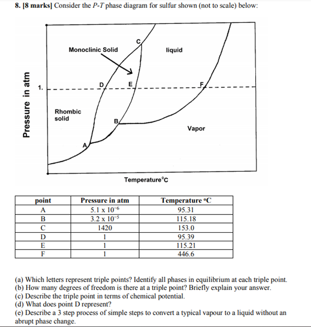 The triple point is merely the point of intersection of the sublimation and vaporization curves, It has been found that on a 'p-T' diagram the triple point is represented by a point (Fig. 19.6) and on a 'p-v' diagram it is a line (Fig. 19.3), and on a 'u-v' diagram it is a triangle. It is therefore called the triple point of the substance, and it represents the only point in the phase diagram in which all three states are in equilibrium. Point C is the critical point of the substance, which is the highest temperature and pressure at which a gas and a liquid can coexist at equilibrium. The line connecting the triple point and the critical point on a phase diagram represents. The critical point is the temperature and pressure above which a substance cannot exist as a liquid. The temperature and pressure combinations above which only a supercritical fluid can exist the temperature and pressure combinations at which the liquid ... The line connecting the triple point and the critical point on a phase diagram represents _____. a) the temperatures and pressures above which only a supercritical fluid can exist. b) the temperatures and pressures at which the solid and gas states are equally stable and at equilibrium. c) the temperatures and pressures at which the liquid and ...