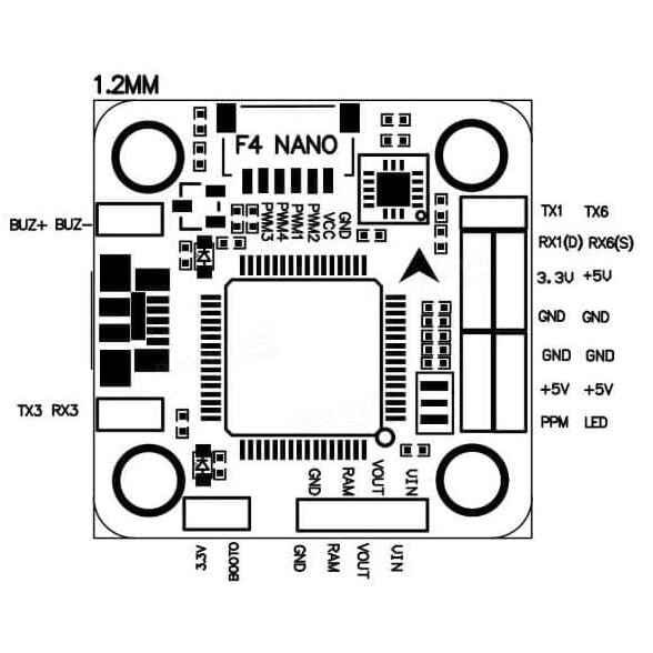 OMNIBUS F4 V3 - Documentation Since there is no documentation at all on any of these F4 boards, here is my try: - STM32F405 LQFP64 (168Mhz, 1M ash, 192kB SRAM) - MPU6000 6DOF IMU - BMP280 barometer - MAX7456 OSD (or fake) - 5V Switching regulator (MP2359) - 6pin SM06B-SRSS connector to ESC ( ts Racestar RS20A4V2)