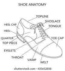 The anatomy of the shoe is made of the toe cap, upper, heel, sole, shank, welt, and waist. The upper is made of the vamp, tongue and eyelets, throat, puff, ... Tongue: The part of the shoe that makes contact with the top of your foot. On a lace-up shoe, it resides underneath the eyestay and laces. Top Piece: The part of the heel that comes in contact with the ground, more commonly seen in high heels and men’s formal styles. Made of a durable material that helps maintain friction with the ground. Shoe Jargon. Last The last is a manufacturer’s model that mimics foot shapes. There are three kinds: curved, semi-curved, and straight. Racing shoes are typically curved for arch support ... Tag Archives: parts of shoe diagram. Shoes. Anatomy of a Dress Shoe. Posted on March 8, 2016 by Dan • Leave a comment. Continue reading ...
