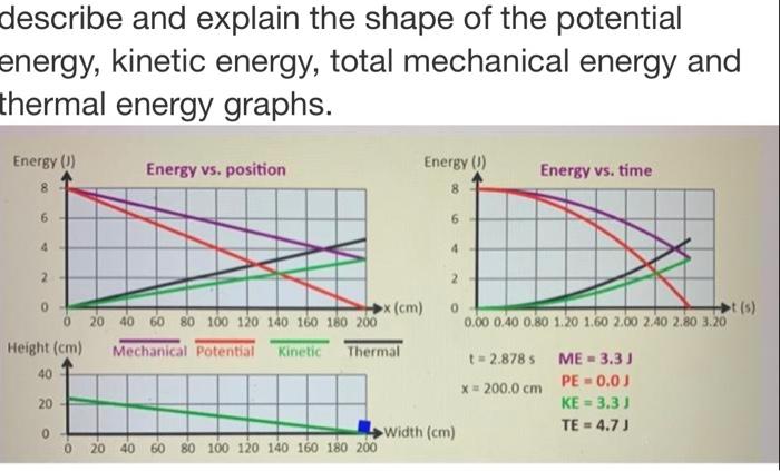Kinetic energy is the energy of motion, potential energy is the energy of position. Plan your minute lesson in Conservation of Energy or Science with helpful. Students will cut and glue the appropriate strip of paper to its place in the Venn Diagram.Potential energy is a form of energy that results from an object's position or arrangement of parts. Show your knowledge of how kinetic and potential energy are converted from one form to the other by labeling the amount of KE and PE on the illustration at various points. Sketch it into your notebook. Mechanical Energy (J) PE (J) KE (J) Height (m) Velocity (m/s) 15,000. 0. 11250. 7500. maximum KE. The higher the level above the ground the more potential energy. The closer to the ground the more kinetic energy. The higher the snowball is on the hill the more potential energy. The closer the snowball is to the bottom the more kinetic energy. Since the snowball stopped rolling at the bottom it doesn't have kinetic energy. 4.1 Work, Power, Potential Energy and Kinetic Energy relations The concepts of work, power and energy are among the most powerful ideas in the physical sciences. Their most important application is in the field of thermodynamics , which describes the exchange of energy between interacting systems.