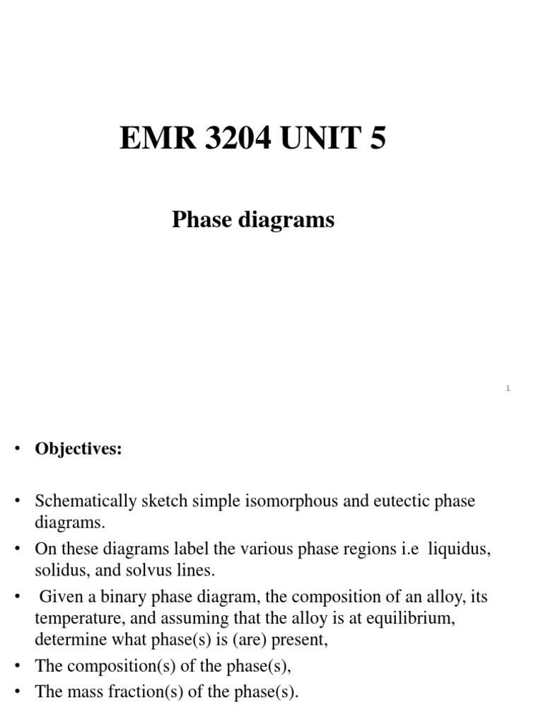 Weight fraction phase diagram. MSE 2090: Introduction to Materials Science Chapter 9, Phase Diagrams 3 Solvent - host or major component in solution,solute- minor component. Solubility Limitof a component in a phase is the maximum amount of the component that can be dissolved Constitution: is described by. (a) the phases present. (b) the composition of each phase. (c) the weight fraction of each phase. Page 14. Binary phase diagram - ...63 pages 5:12Phase diagrams contain two-phase regions. We can use the lever rule to determine the phase fraction of ...3 Sep 2020 · Uploaded by Taylor Sparks mass fraction of each phase is 0.5, estimate: (a) The temperature of the alloy (b) The compositions of the two phases Solution (a) We are given that the mass fractions of α and liquid phases are both 0.5 for a 30 wt% Sn-70 wt% Pb alloy and asked to estimate the temperature of the alloy. Using the appropriate phase diagram, Figure 9.8, by trial