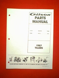 I have a Gilson Tiller model # I have A Gilson tiller model Gil -1580J serial #302682 - 137 were can I get a parts brake down on what goes were and what the correct parts #'s are and were on earth can I get parts it's a good tiller very heavy duty please help if you can thanks in advance. David: I also have a tiller made by Gilson. Huge selection of Montgomery Wards Tiller parts in stock. Same day shipping. Open 7 days a week. 365 day return policy. Gilson Tiller Parts at Jack's - Find all the Gilson Tiller Parts and Accessories you need, with fast shipping and low prices! Gilson Rototiller Gil 1580 1 Manual Documents - - Gilson Tiller GIL 1580 1 manuals, user manuals, owners