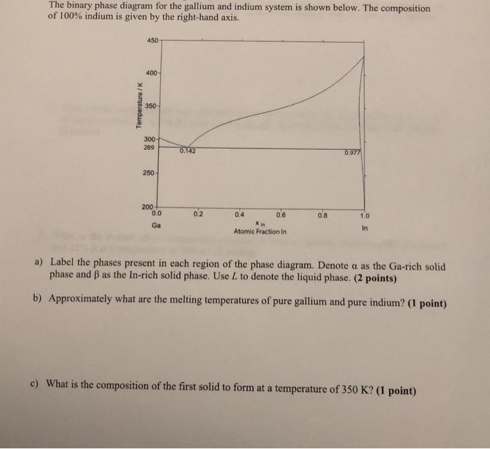 Nov 15, 2012 — This point is the eutectic temperature and composition. Based on the indium-gallium phase diagram, which depicts which phases are stable over a ...
