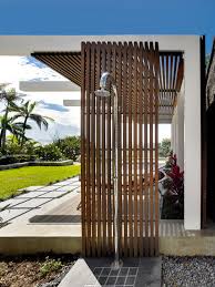 Plumbing Considerations for Installing an Outdoor Shower In QLD (and do check with your local council or shire on what the plumbing requirements are), if your outdoor shower has tempered water (ie hot and cold water), then it must have a roof and there needs to be a grated drain that connects to the sewer for drainage.