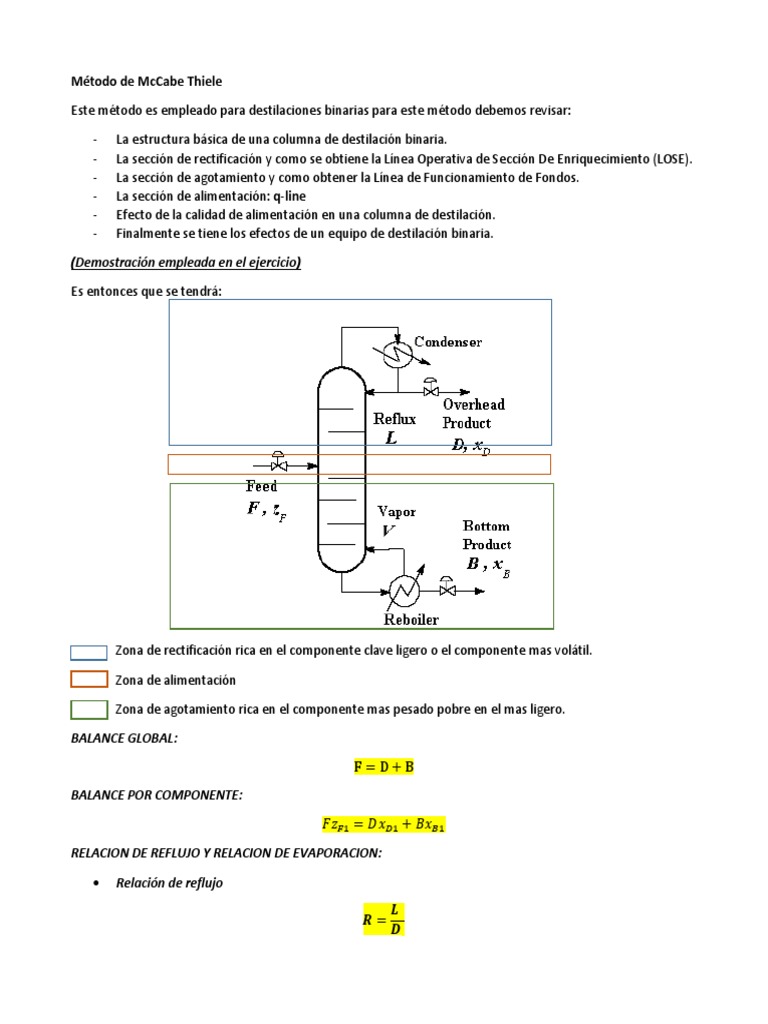 two possibilities: only the slope of the q-line will be necessary, or no further information will be necessary. •The McCabe-Thiele method allows full control over reboiler duty, and it is not uncommon to first solve a problem assuming minimum reflux ratio. Results can be scaled to actual reflux ratio, typically R = 1.4*Rmin.