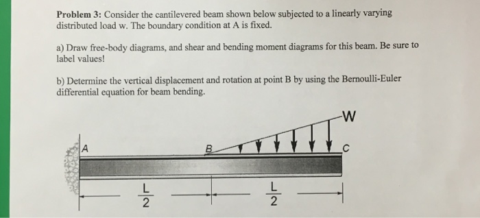 (which has an overhang) and a beam fixed (or restrained) at both ends, respectively. Cantilever beams and simple beams have two reactions (two forces or one force and a couple) and these reactions can be obtained from a free-body diagram of the beam by applying the equations of equilibrium. Such beams are said to be statically https://goo.gl/P5AUbb for more FREE video tutorials covering Engineering Mechanics (Statics & Dynamics)The key objective of this video is to consider support... Part A Draw the free-body diagram for the cantilevered beam. A is the a fixed support. Draw the vectors starting at the black dots. The location and orientation ... Question: Draw the free body diagram (FBD) of the uniform cantilever beam shown. (If a beam is "cantilevered," it has a fixed support at one end, which is the right end for this beam.) The beam weighs 150 lb/ft, and the weight of the beam acts through its centroid. Draw the FBD of the bracket shown.