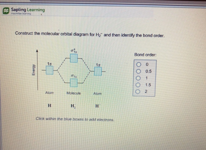 37 construct the molecular orbital diagram for h2 and then identify the bond order
