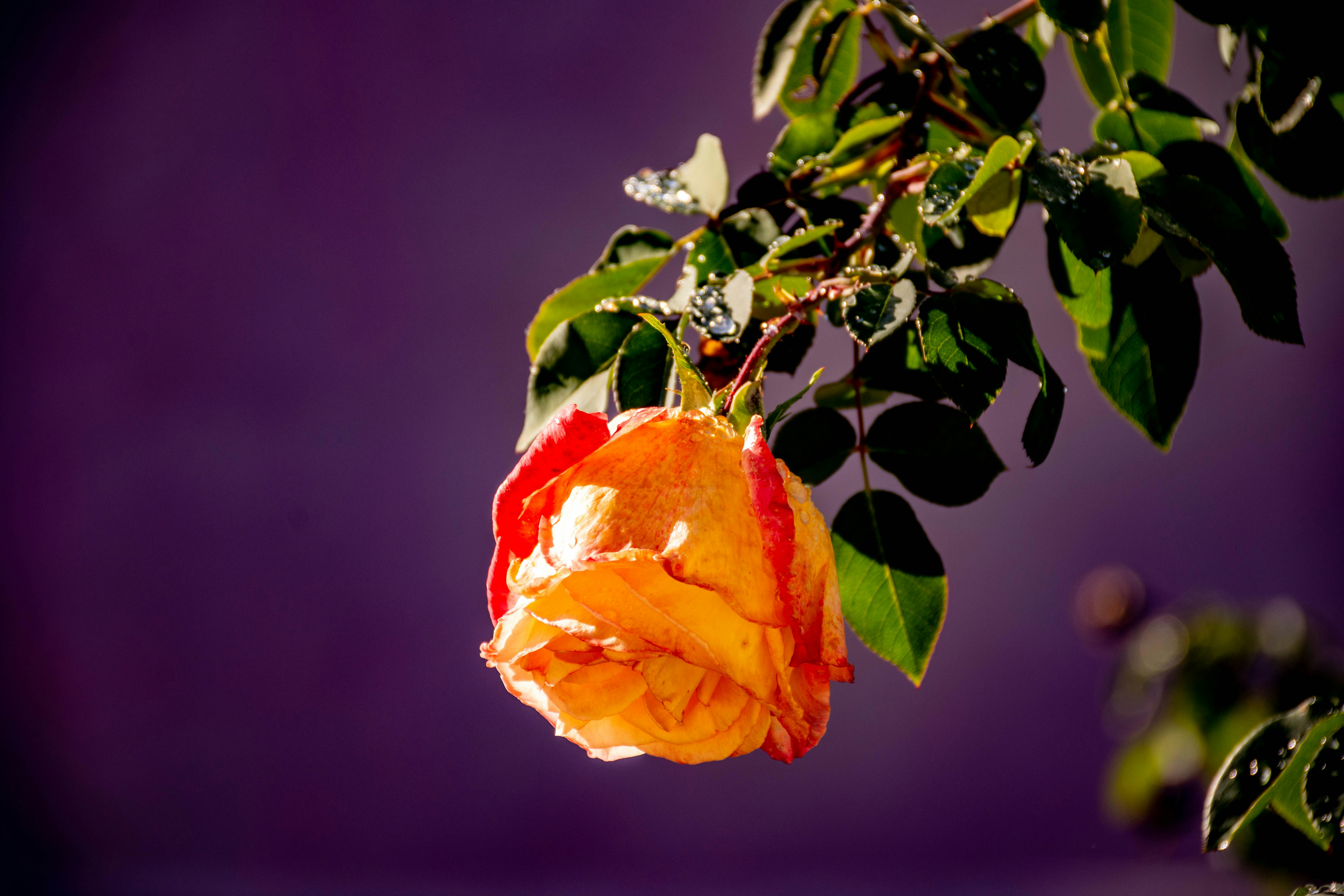 orange flower in tilt shift lens