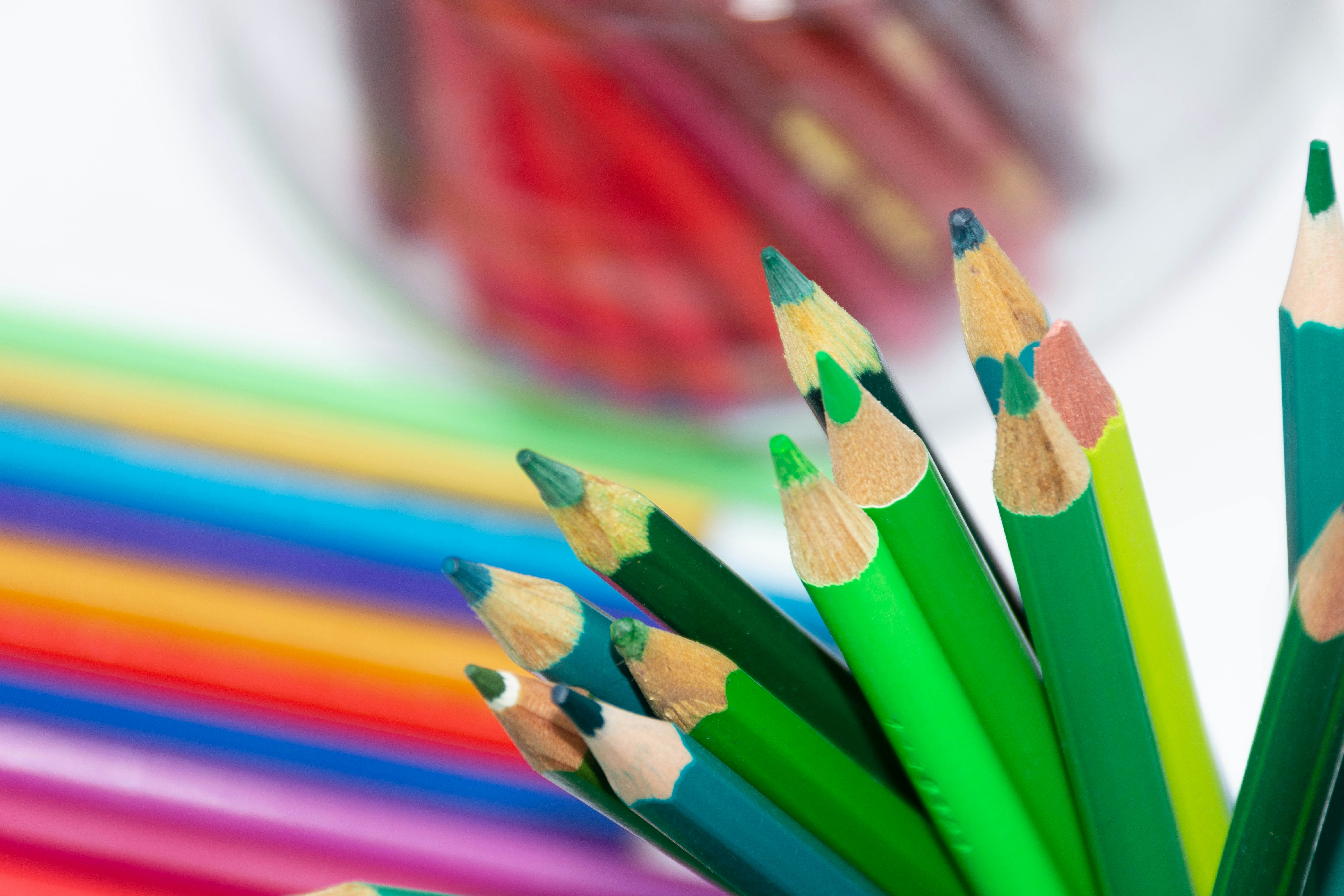 close up photography of colored pencils