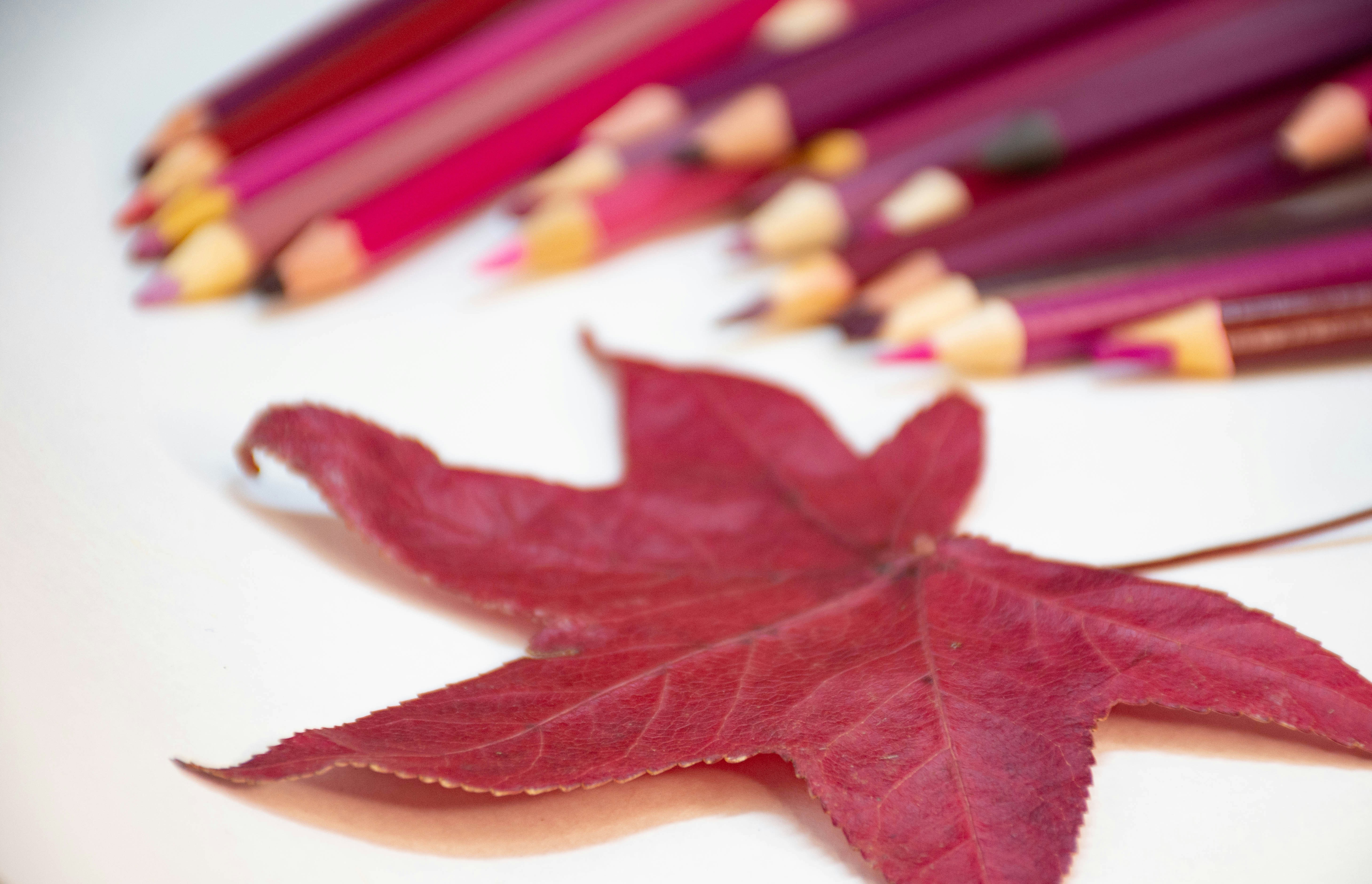 red maple leaf on white table